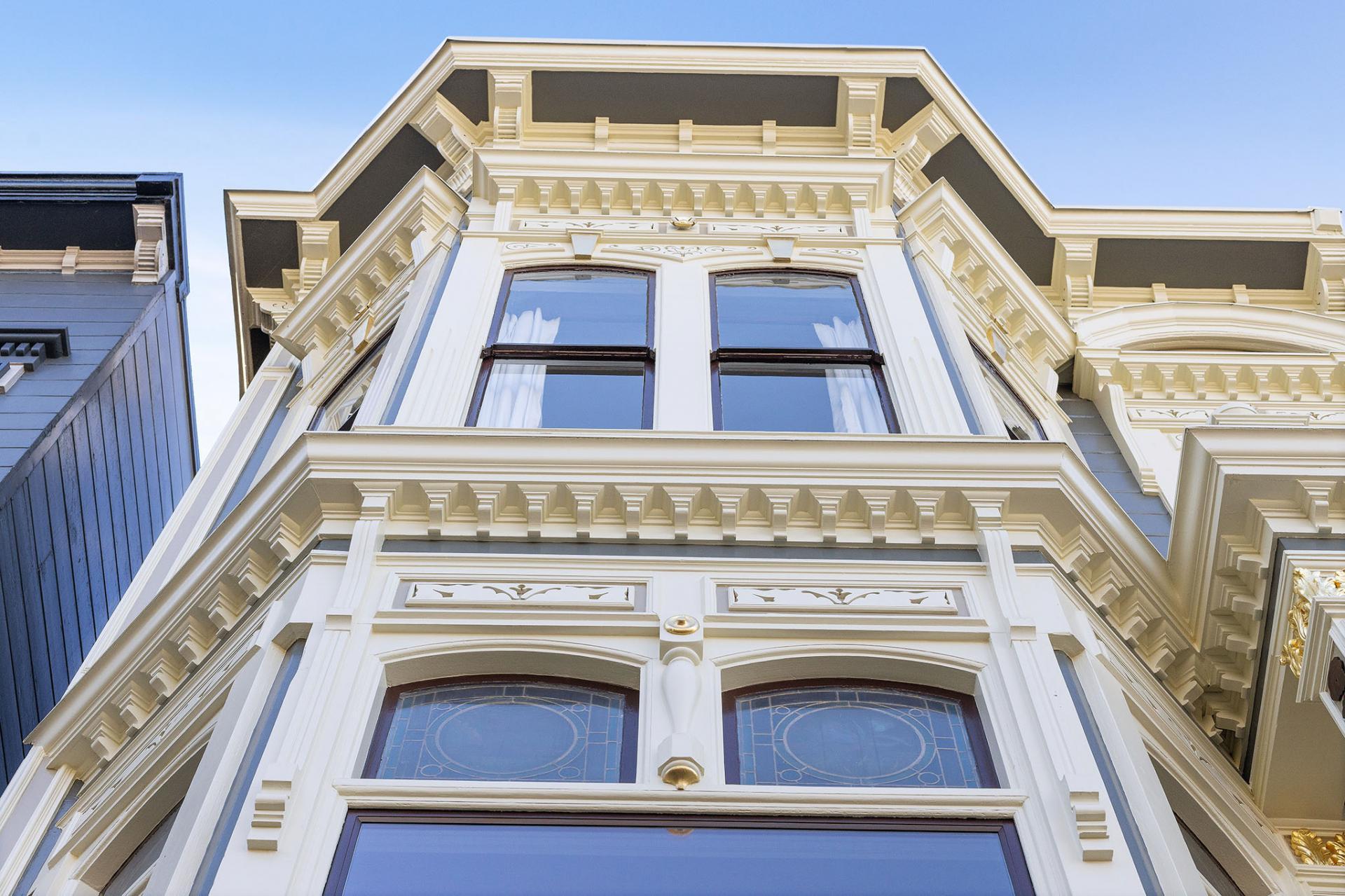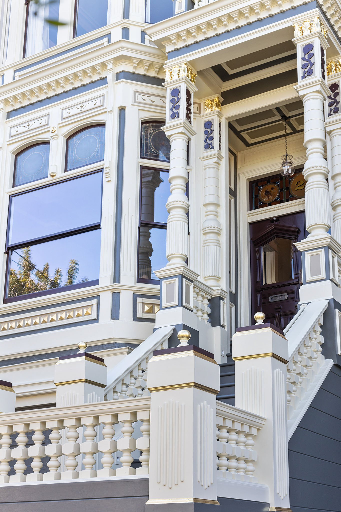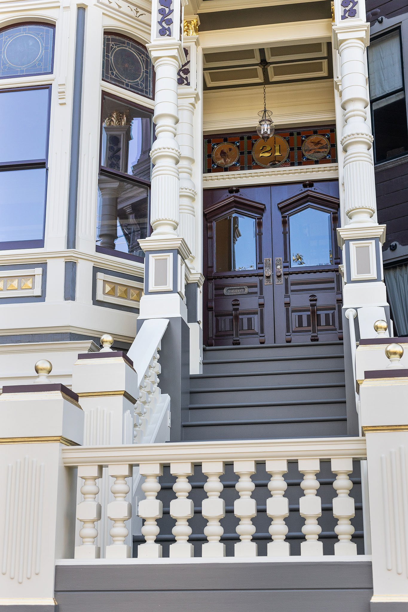 This spectacular Victorian was built in 1890 for Joseph Budde, an inventor, patent holder, and major manufacturer of the flush toilet. Through its more than 130-year life, this home evolved with the many incarnations of the Haight District. The most significant was the street modification that made way for the Haight Street railway line in the early 1920s. At that time, streets and sidewalks widened causing the straight-line, two-story staircase to literally take a turn.