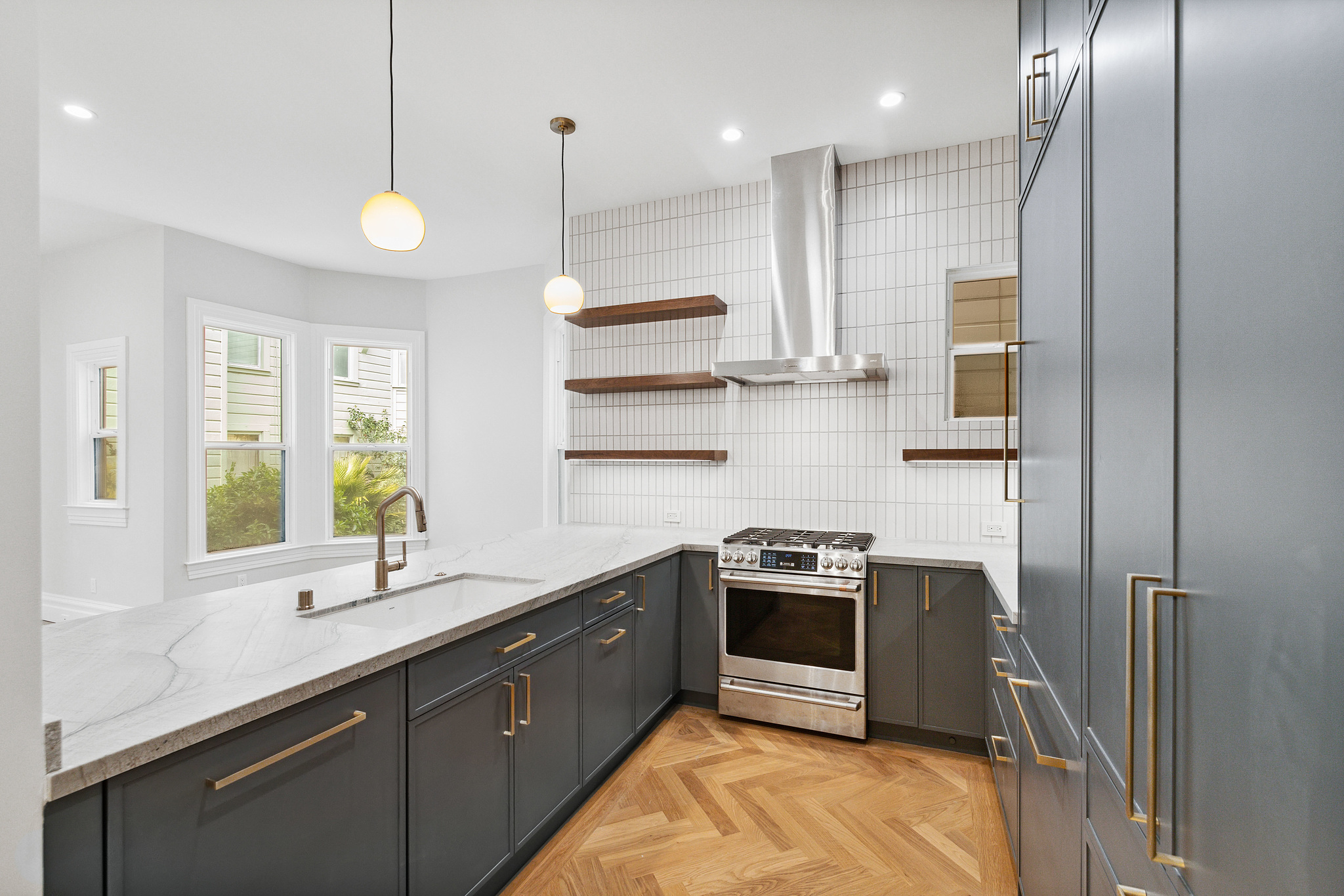 A significant budget was dedicated to upgrading the infrastructure. Like many historic San Francisco homes, this property required structural and system improvements in addition to aesthetic elements. All of the electrical, plumbing, and HVAC components were upgraded. Rigorous steps were taken to insulate the exterior and interior walls and ceilings from the thermal and sound. All gas appliances, except the cooktop, were removed and replaced with energy-efficient appliances. The plumbing was upgraded with all-new copper piping, and plenty of seismic work was performed to improve the overall structure of the building.