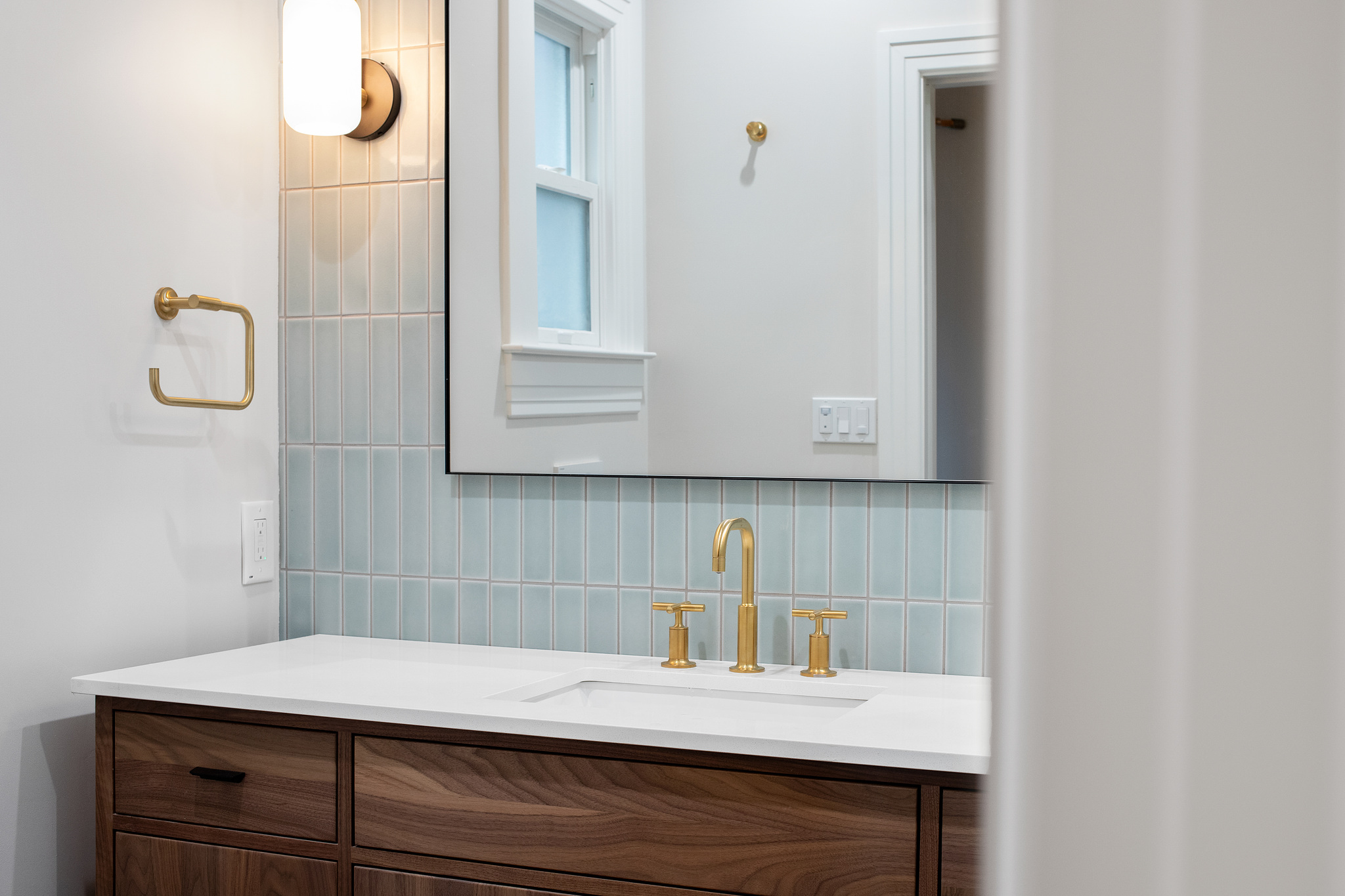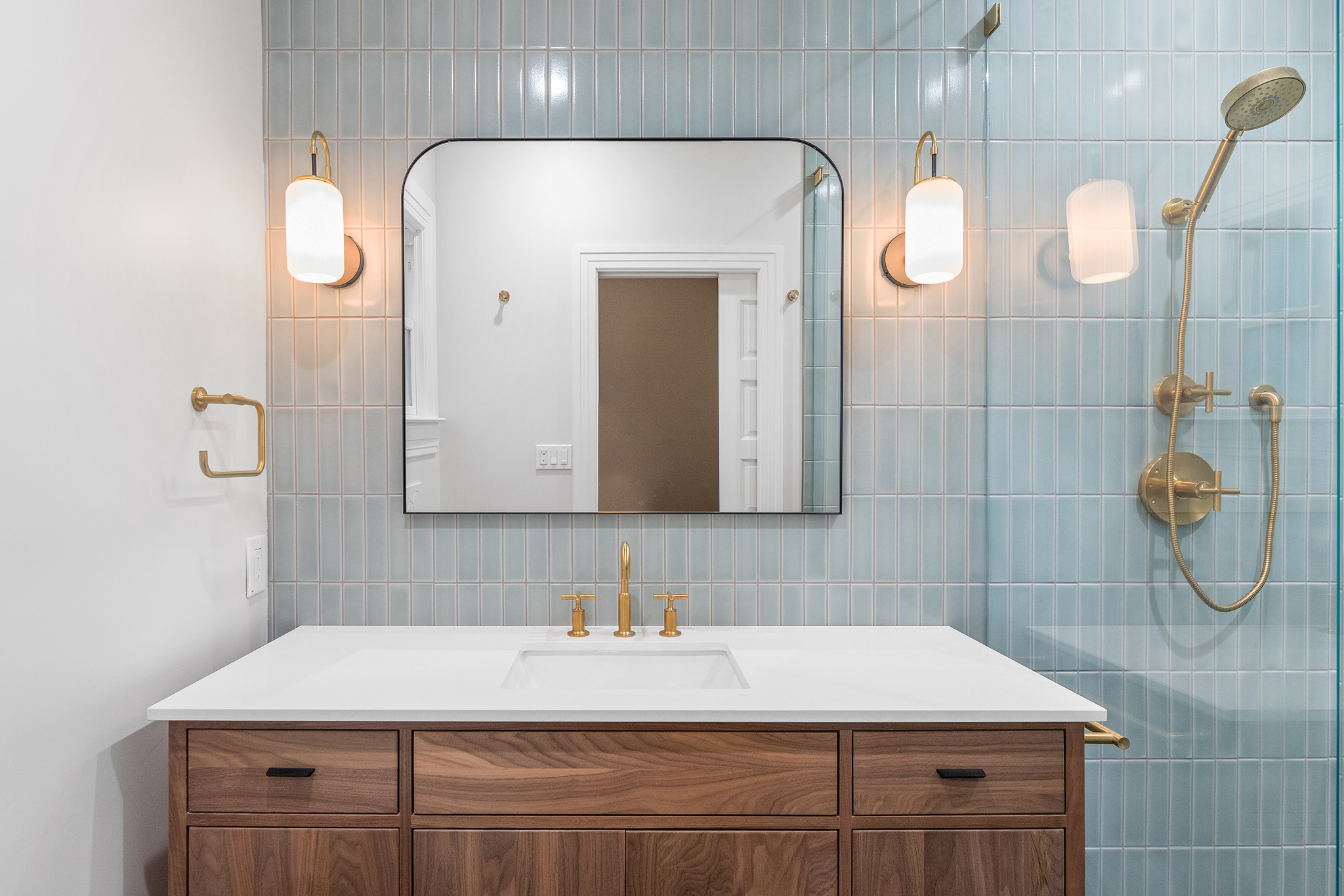 The traditional double-parlor Victorian floor plan with the railroad-style center corridor was reconfigured to separate private and social areas – making for a comfortable entertaining and work-from-home environment. An additional ensuite bathroom was developed by converting a large walk-in closet. The floor plan now comfortably accommodates a family of four.
